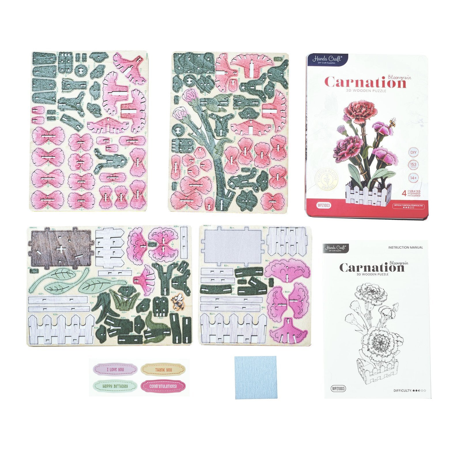 3D Wooden Puzzle – Carnation Bloom Set