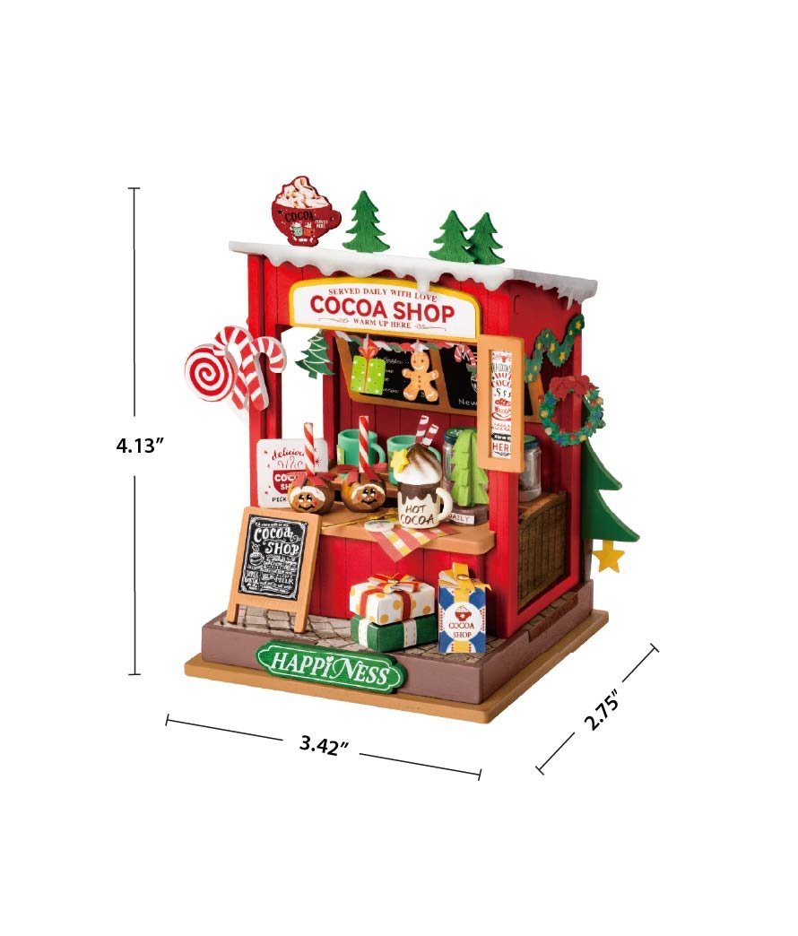 Capture the sweet spirit of the season with this delightful DIY miniature cocoa stand kit. Featuring a rustic wooden stand serving up steaming cups of cocoa, gingerbread cookies, and caramel apples, this tiny scene is full of festive charm. With its cozy details and handcrafted feel, it’s the perfect project to celebrate winter’s simple joys-whether displayed on a shelf, gifted to a loved one, or added to your holiday collection.