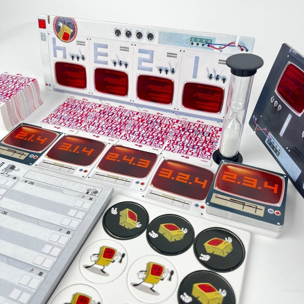 - Includes: Keyword screens, code cards, note sheets, sand timer, rules