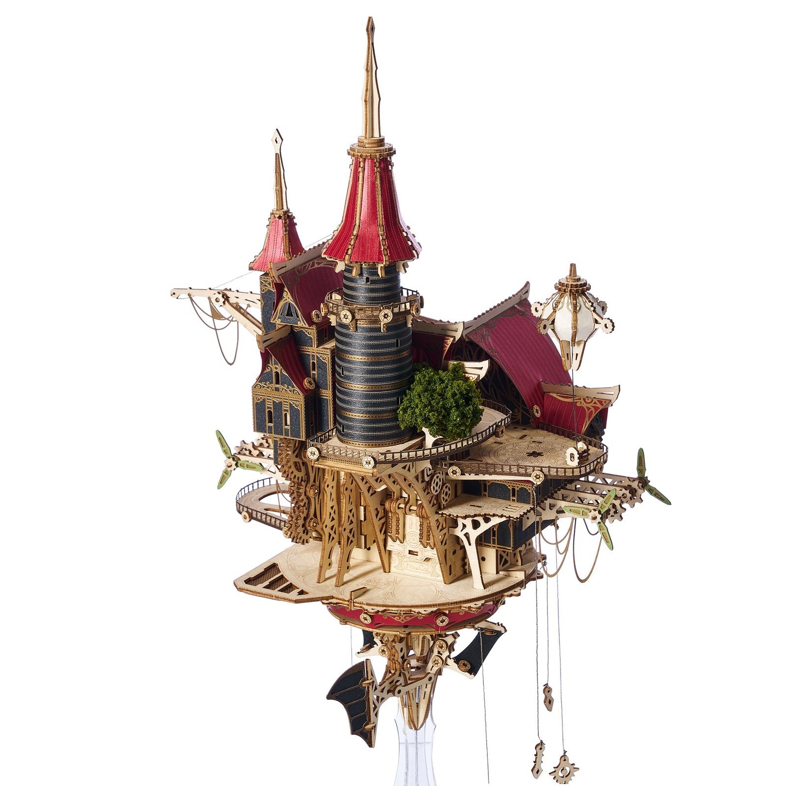 The wooden stand can be used for a freestanding display, or the castle can be mounted on a wall. It also includes a mini spaceship, and plant decorations for extra charm.
