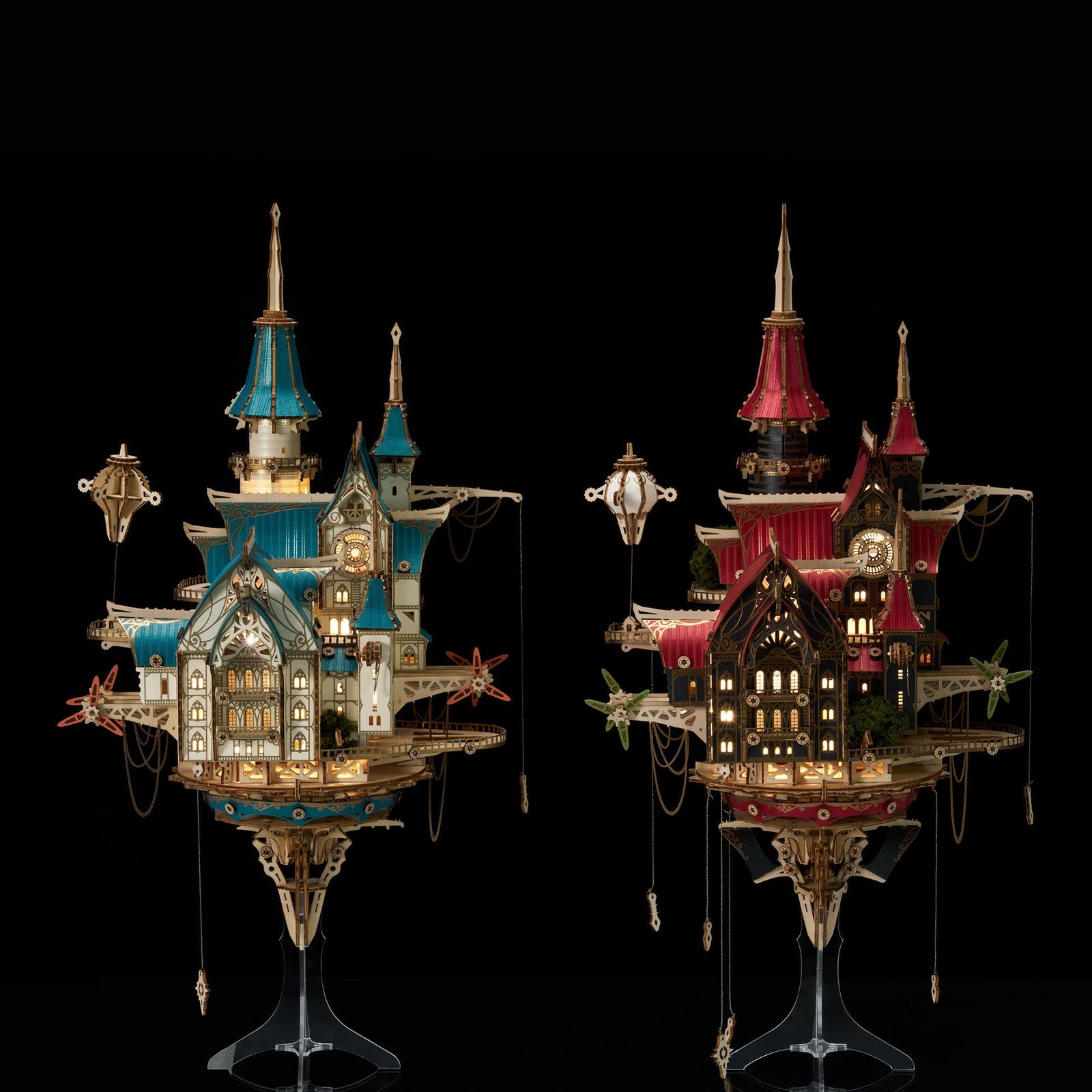 The built-in LED lighting adds a warm and magical glow, making your floating castle look stunning day or night.
