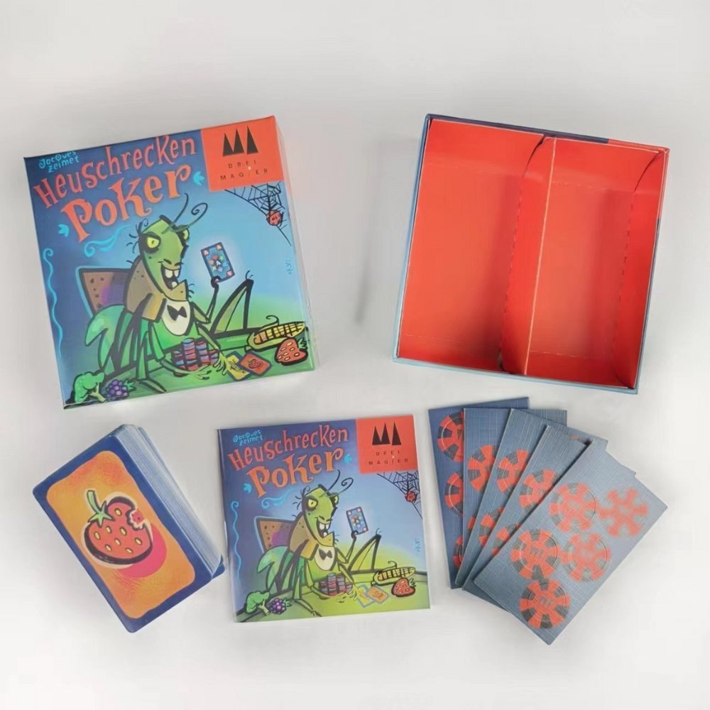 Heuschrecken Poker (Grasshopper Poker) is a hilarious bluffing card game in the popular “Cheating Moth” and “Cockroach Poker” series. Great for kids and adults alike, this fast-paced game of lying, guessing, and outwitting opponents brings laughter and mischief to every round. In this English edition, players must trick each other while trying not to get stuck with pesky locusts!