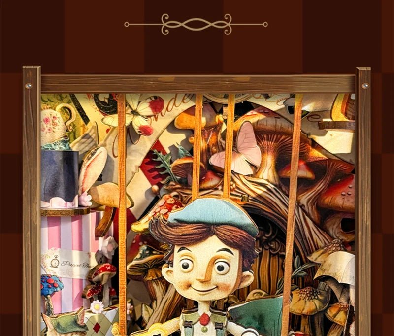 Step into a whimsical world of magic, nostalgia, and storytelling with the Pinocchio Puppet Theater DIY Book Nook Kit—a stunning handcrafted miniature stage that brings fairytales to life right on your bookshelf.