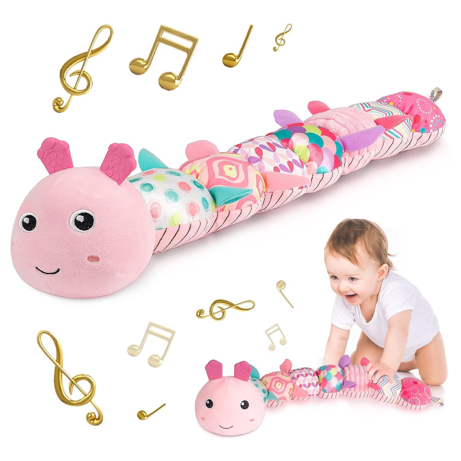 - 4-in-1 Fun: Teether, rattle, music, and plush toy in one.