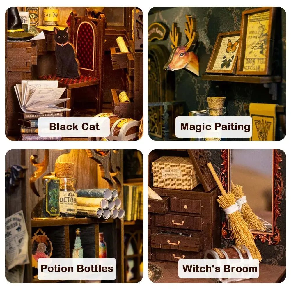 🧪 Interactive Details – Potions, shelves, scrolls, and magical touches throughout